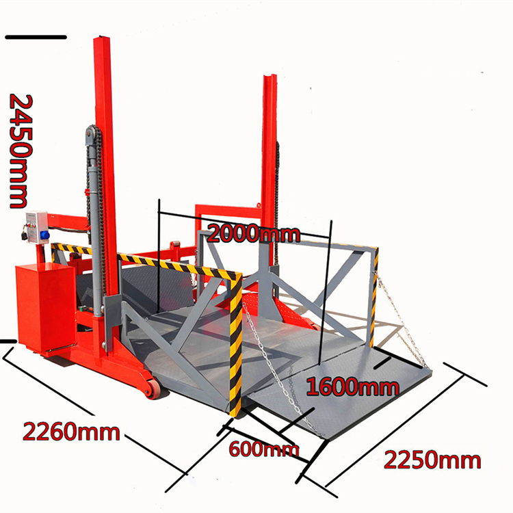 6.液壓系統(tǒng)及電器控制系統(tǒng)安裝在該設(shè)備側(cè)面,便于維修及預(yù)防車輛在裝載貨物倒車時頂撞到該電控箱;